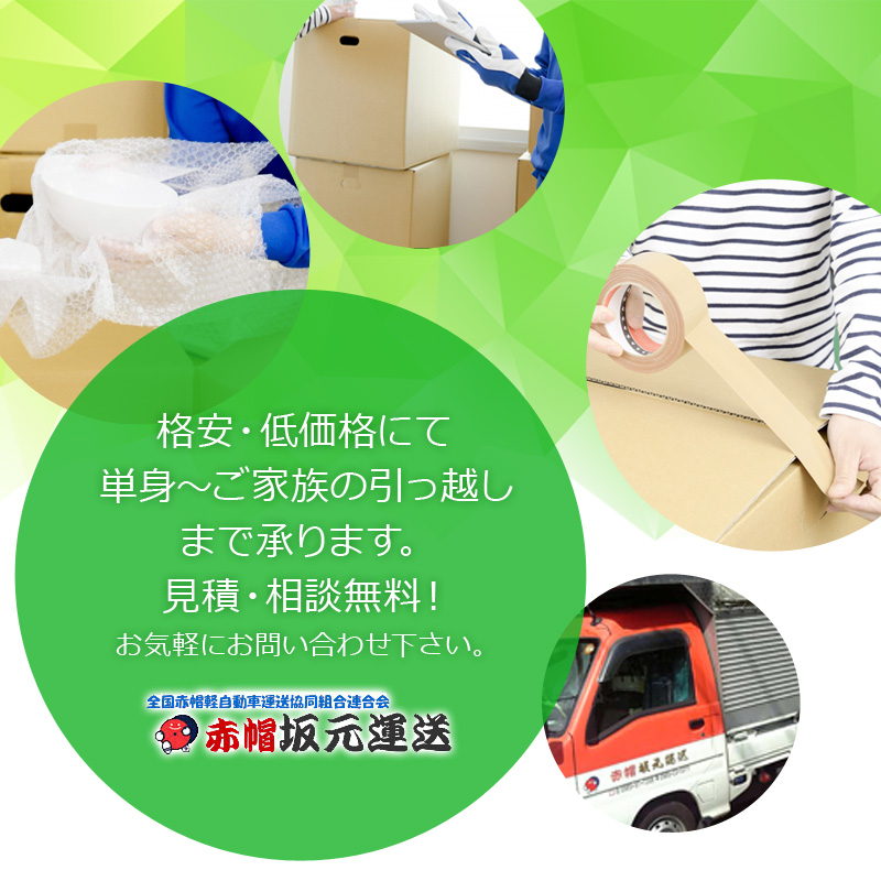 1人暮らしのかた、単身赴任や学生さんなどがお引越しされる際には、お気軽に赤帽にお電話下さい。